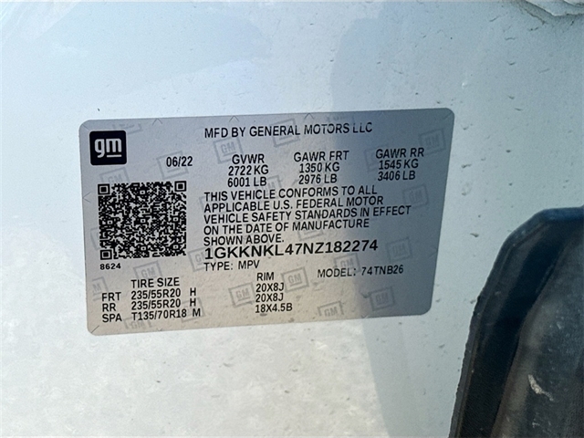 | VIN | 1GKKNKL47NZ182274 |